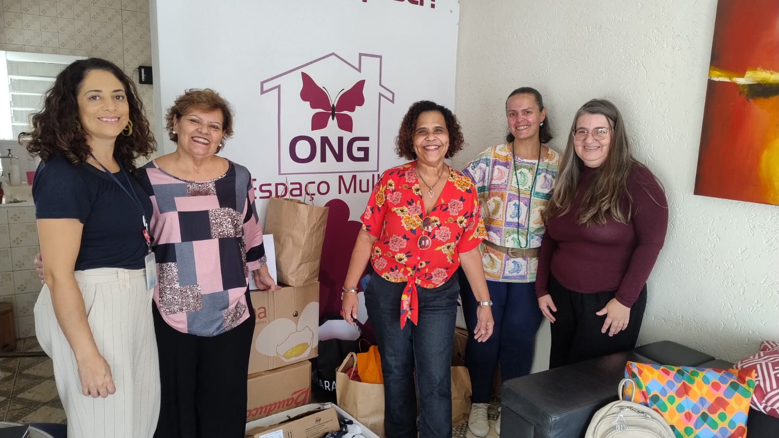 Servidoras da subsede da DR3 entregam itens ao Espaço Mulher, que apoia vítimas de violência doméstica (Foto: Divulgação/FCASA)